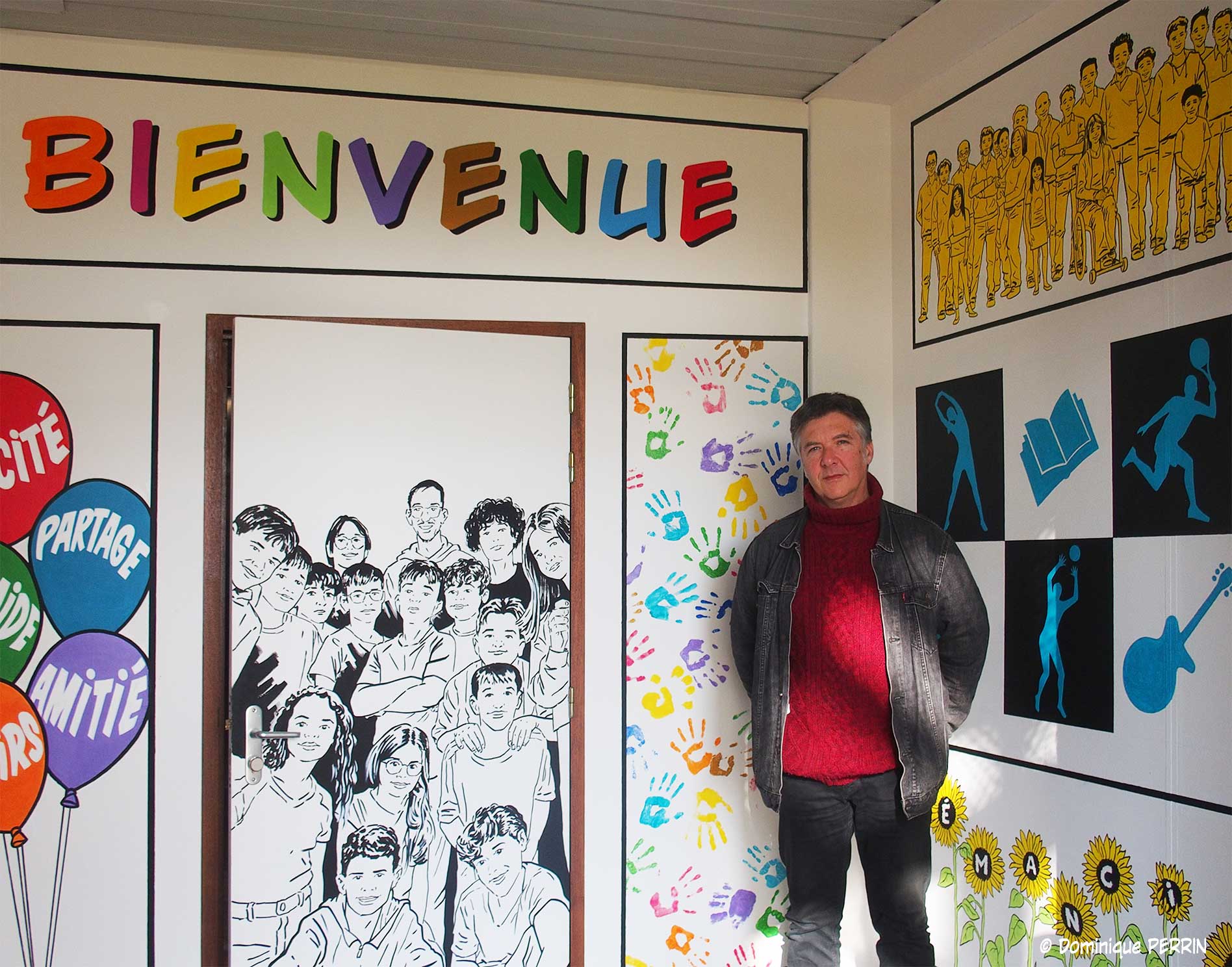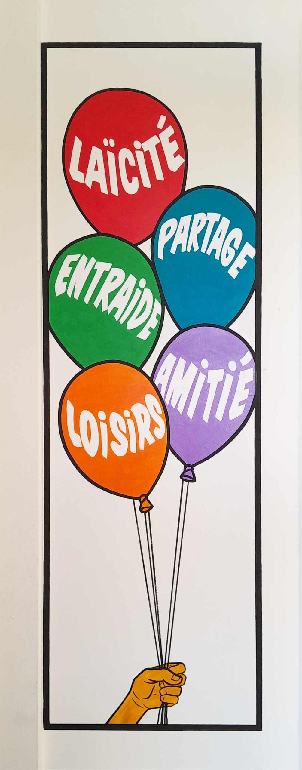 FRESQUES CARICATURES PORTRAITS FRESQUES CARICATURES PORTRAITS Envie d’embellir votre quotidien? D’affirmer votre identité et vos valeurs?Que vous soyez une collectivité, une entreprise ou un particulier,Je conçois et réalise vos fresques d’intérieur.Décor peintTrompe l’œilLogoPeinture en lettres MJC Guilherand-Granges octobre 2025 J’ai eu le plaisir de concevoir et réaliser avec l’aide des adolescents du centre aéré de Guilherand-Granges, une fresque sur le thème de la laïcité.